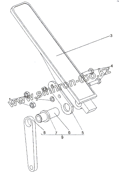 Каталог запасных частей к технике: МЗКТ-652511. Педаль с втулкой и рычагом 74133-1108006