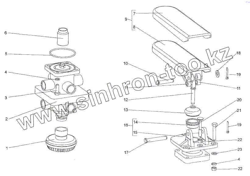Каталог запасных частей к технике: МЗКТ-652511. Привод тормозного крана