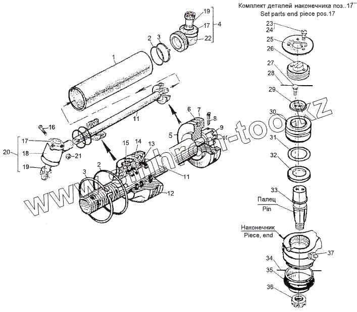 Каталог запасных частей к технике: МЗКТ-652511. Цилиндр 8021-3405007