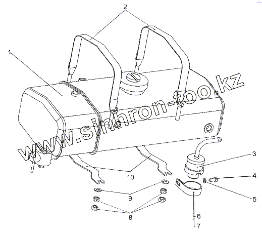 Каталог запасных частей к технике: МЗКТ-652511. Установка бачка расширительного и редукционного клапана