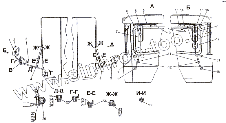 Каталог запасных частей к технике: МЗКТ-652511. Установка держателей зеркал и зеркал