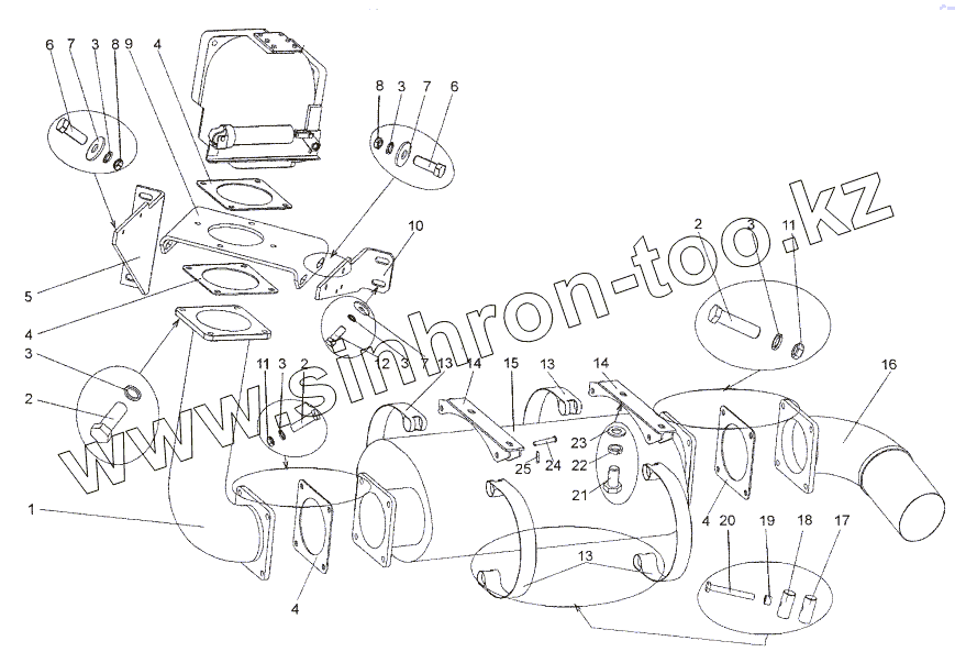 Каталог запасных частей к технике: МЗКТ-652511. Установка глушителя