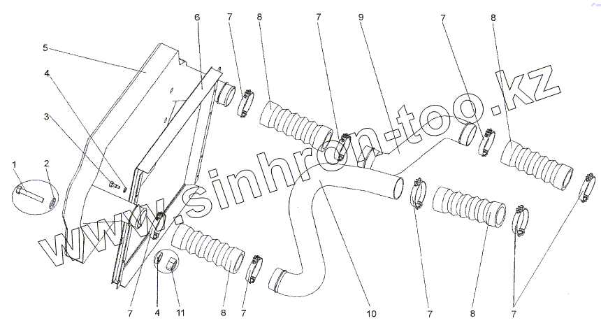 Каталог запасных частей к технике: МЗКТ-652511. Установка охладителя наддува