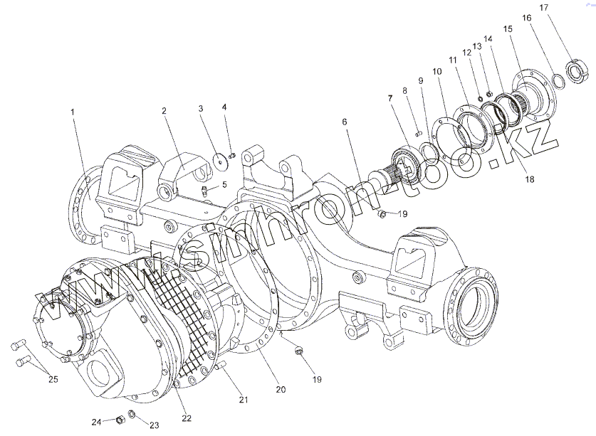 Каталог запасных частей к технике: МЗКТ-652511. Установка редуктора заднего моста