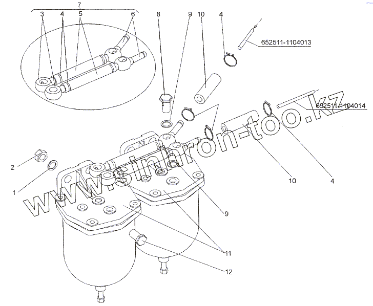 Каталог запасных частей к технике: МЗКТ-652511. Установка топливных фильтров грубой очистки