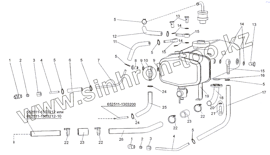 Каталог запасных частей к технике: МЗКТ-652511. Установка трубопроводов бачка расширительного