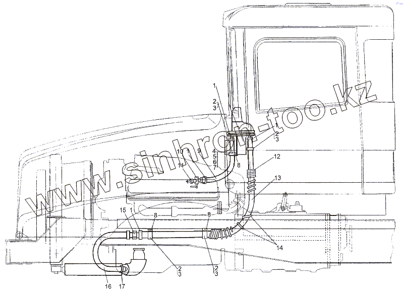 Каталог запасных частей к технике: МЗКТ-652511. Установка трубопроводов отопителя