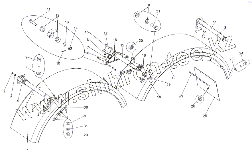 Каталог запасных частей к технике: МЗКТ-652511. Установка задних крыльев (крылья из стеклопластика)