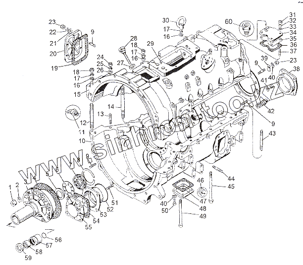 Каталог запасных частей к технике: МЗКТ-6527. Картерные детали коробки передач