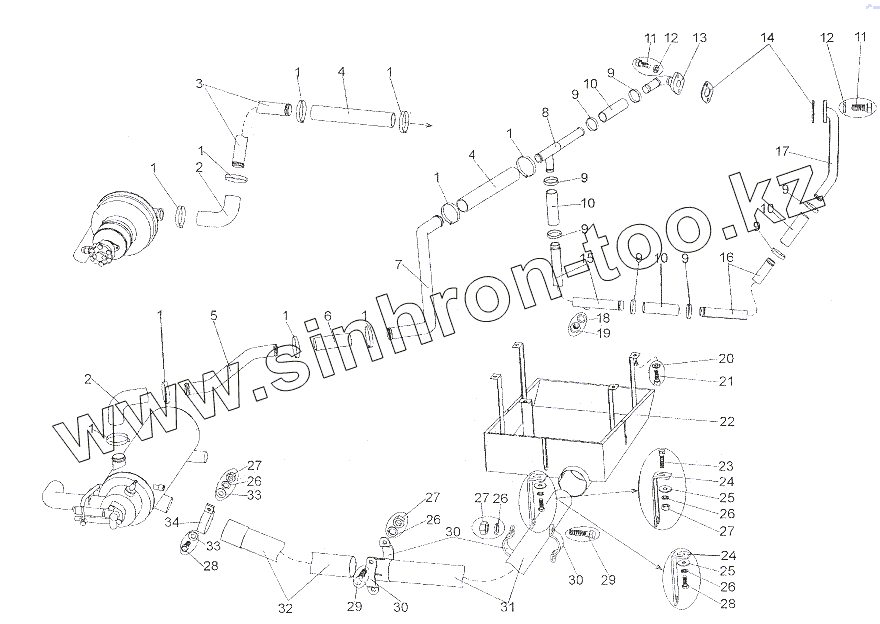 Каталог запасных частей к технике: МЗКТ-6527. Трубопроводы системы подогрева двигателя