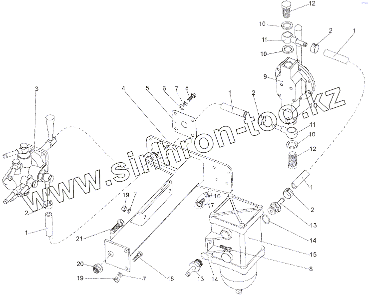 Каталог запасных частей к технике: МЗКТ-6527. Установка агрегатов топливной системы