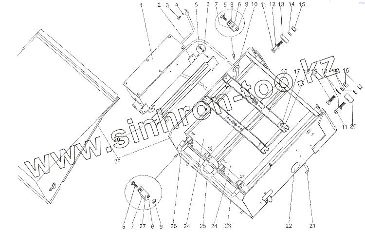 Каталог запасных частей к технике: МЗКТ-6527. Установка аккумуляторных батареи и контейнера