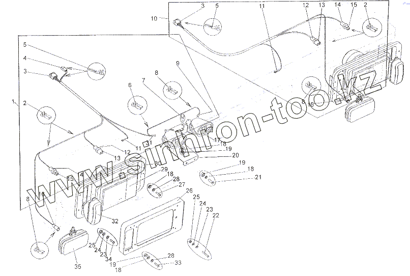 Каталог запасных частей к технике: МЗКТ-6527. Установка головного освещения