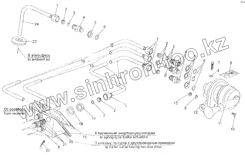 Каталог запасных частей к технике: МЗКТ-6527. Установка крана стояночного тормоза