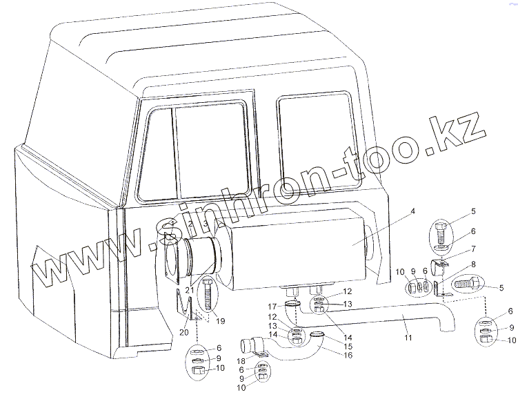 Каталог запасных частей к технике: МЗКТ-6527. Установка отопителя независимого действия