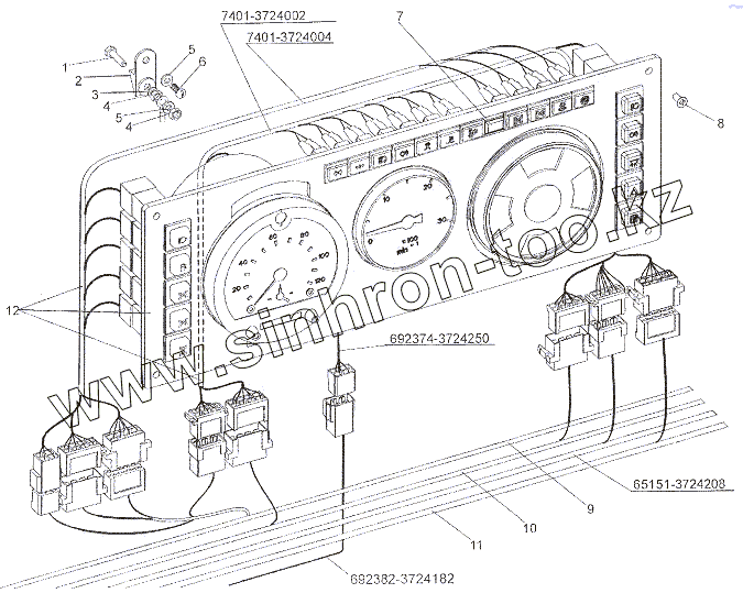 Каталог запасных частей к технике: МЗКТ-6527. Установка панели приборов двигателя