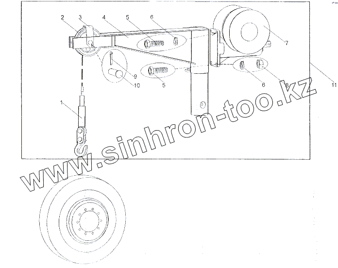Каталог запасных частей к технике: МЗКТ-6527. Установка подъемника запасного колеса
