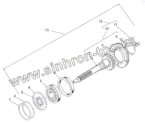 Каталог запасных частей к технике: МЗКТ-6527. Валы и шестерни первичного вала