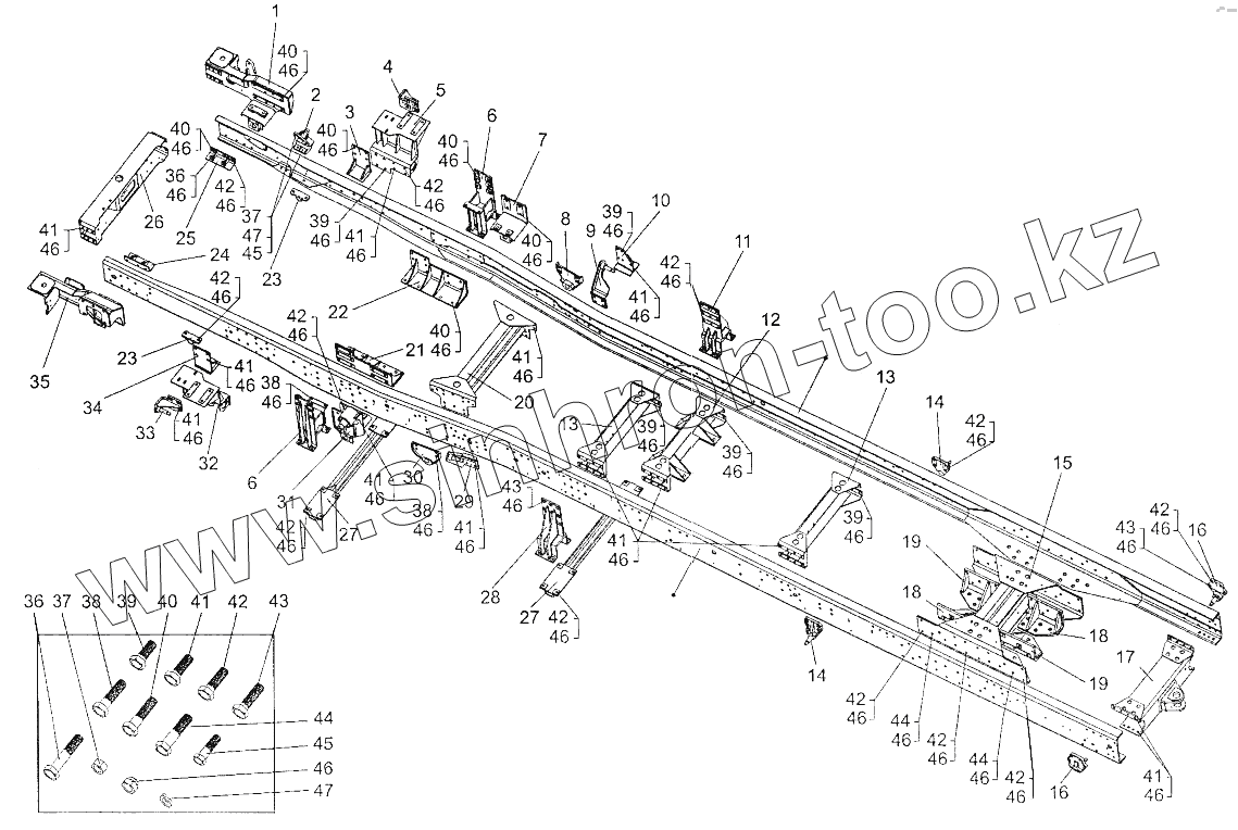 Каталог запасных частей к технике: МЗКТ-700600-011. Рама 700600-2800012-10