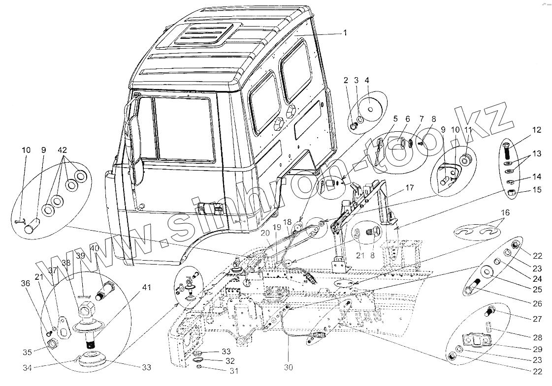 Каталог запасных частей к технике: МЗКТ-700600-011. Установка кабины