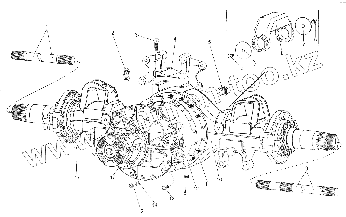 Каталог запасных частей к технике: МЗКТ-700600-011. Установка редуктора заднего моста