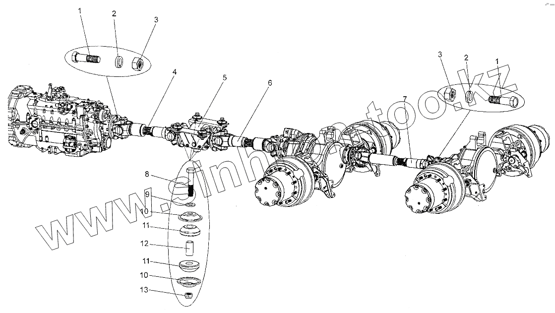 Каталог запасных частей к технике: МЗКТ-700600-011. Установка валов карданных
