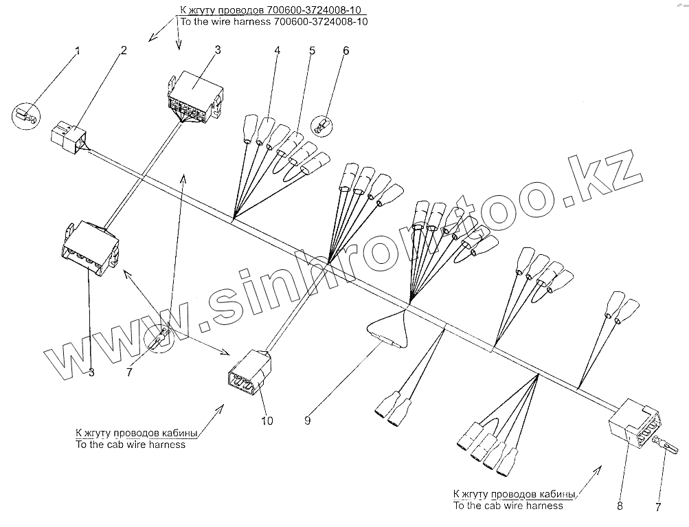 Каталог запасных частей к технике: МЗКТ-700600-011. Жгут проводов 700600-3724017