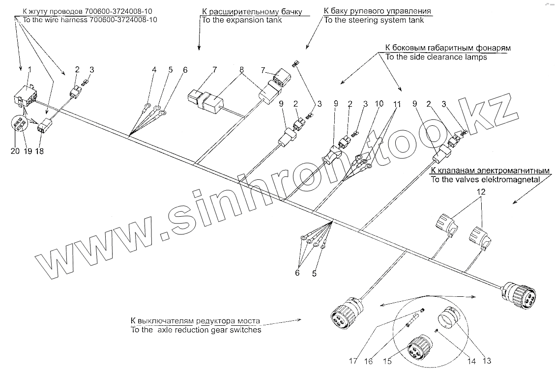 Каталог запасных частей к технике: МЗКТ-700600-011. Жгут проводов 700600-3724027-20