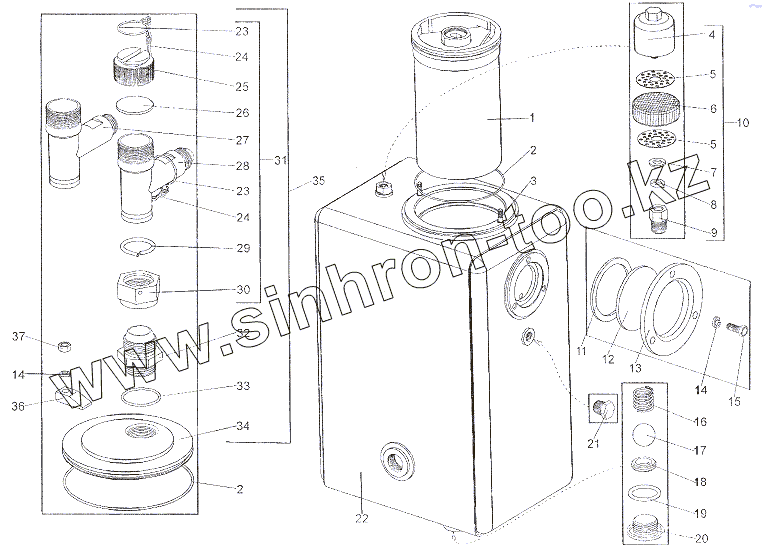 Каталог запасных частей к технике: МЗКТ-7401. Баки масляные 65158-3410010-20, 692374-3410010