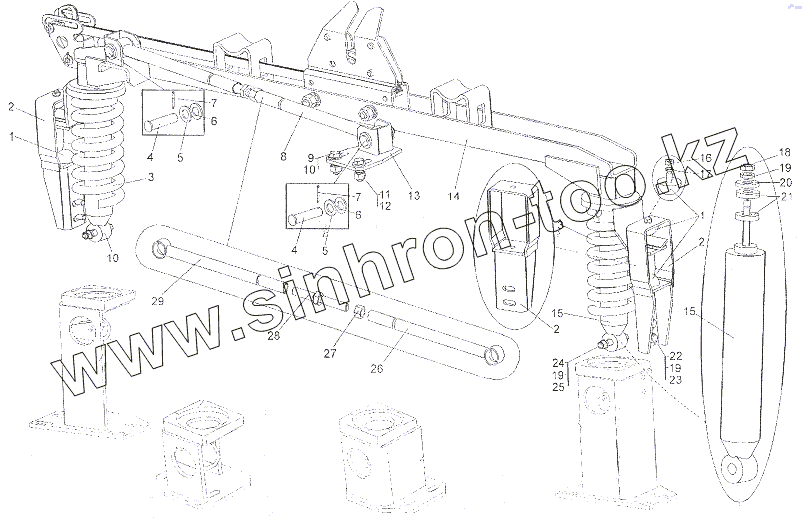 Каталог запасных частей к технике: МЗКТ-7401. Подрессоривание кабины заднее
