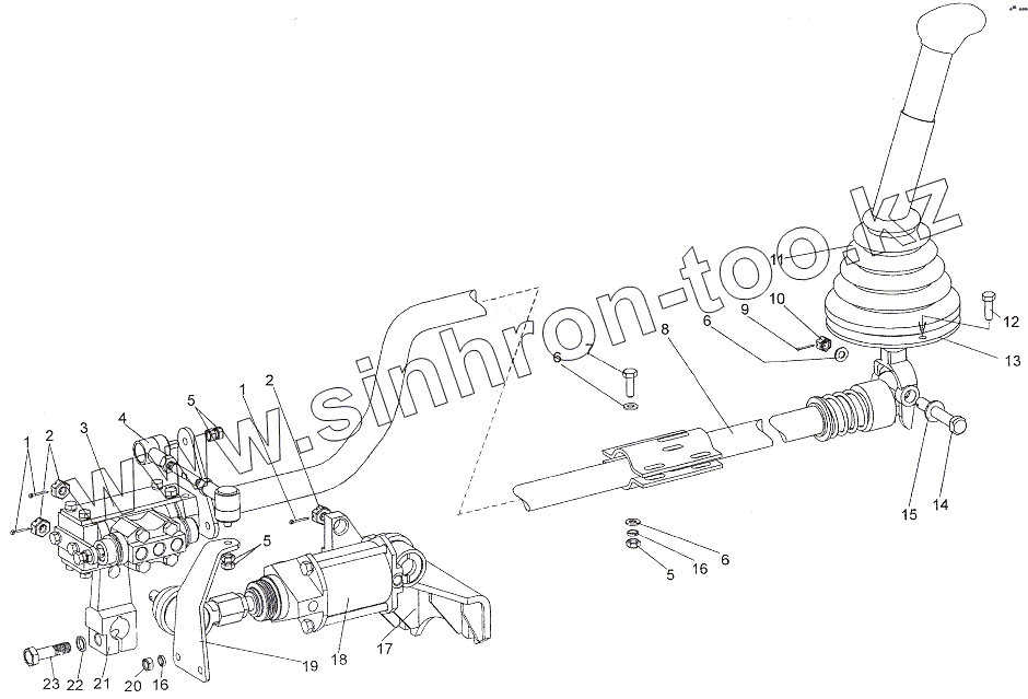 Каталог запасных частей к технике: МЗКТ-7401. Привод управления механизмом переключения передач