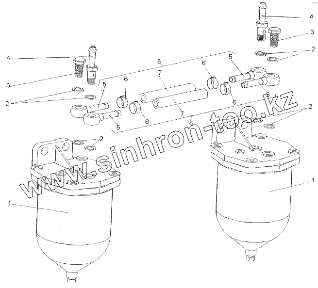 Каталог запасных частей к технике: МЗКТ-7401. Топливопроводы фильтр-отстойника топлива