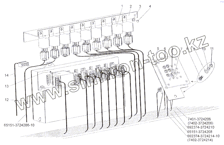 Каталог запасных частей к технике: МЗКТ-7401. Установка блока предохранителей и реле