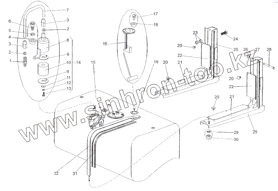 Каталог запасных частей к технике: МЗКТ-7401. Установка нижнего топливного бака