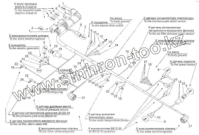 Каталог запасных частей к технике: МЗКТ-7401. Жгут проводов двигателя 7401-3724160