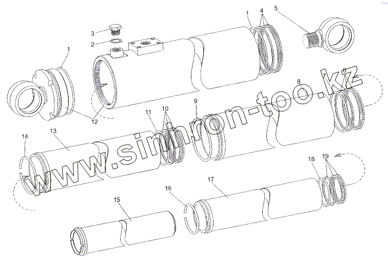 Каталог запасных частей к технике: МЗКТ-7402. Гидроцилиндр 6527-8603010