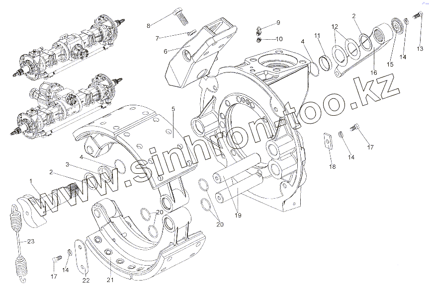 Каталог запасных частей к технике: МЗКТ-7402. Привод тормозов передних мостов