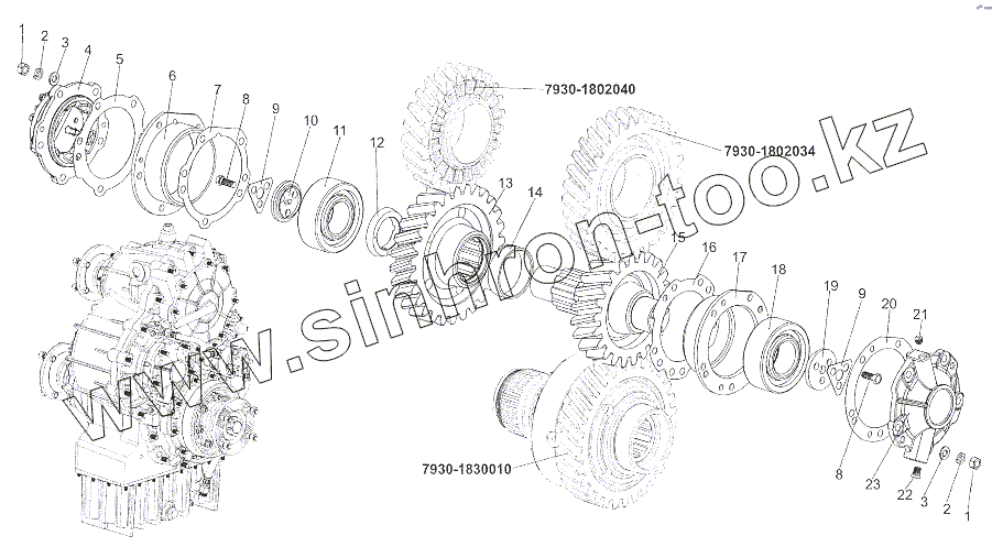 Каталог запасных частей к технике: МЗКТ-7402. Промежуточный вал