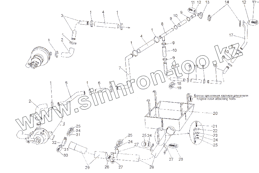 Каталог запасных частей к технике: МЗКТ-7402. Трубопроводы системы подогрева двигателя