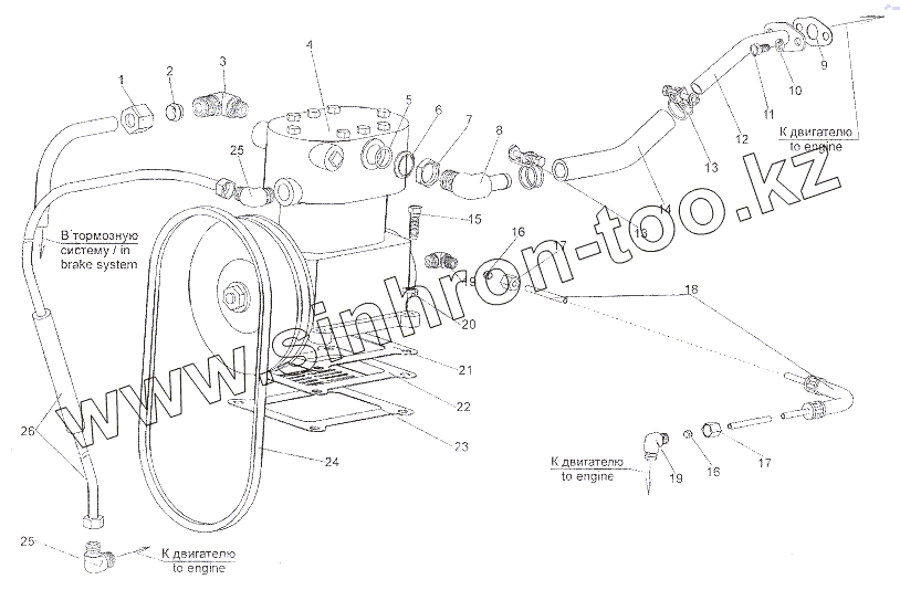 Каталог запасных частей к технике: МЗКТ-7402. Установка компрессора