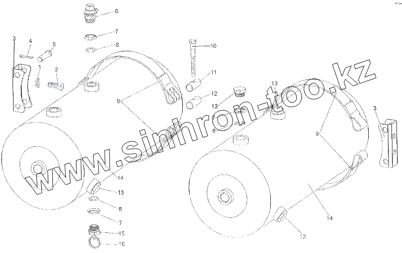 Каталог запасных частей к технике: МЗКТ-7402. Установка ресиверов стояночного тормоза