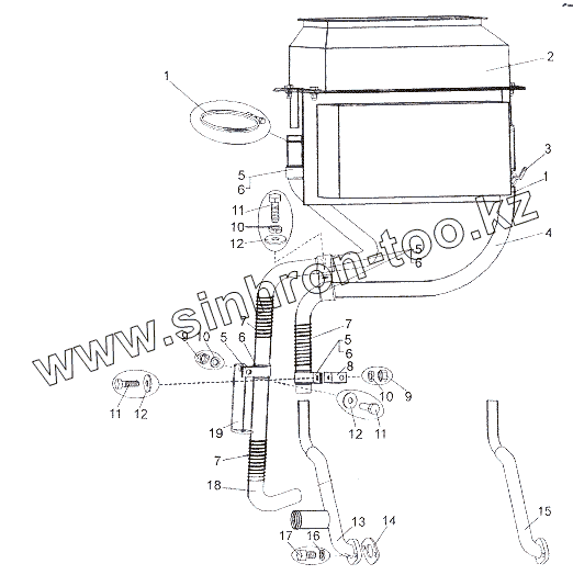 Каталог запасных частей к технике: МЗКТ-7402. Установка трубопроводов отопителя кабины