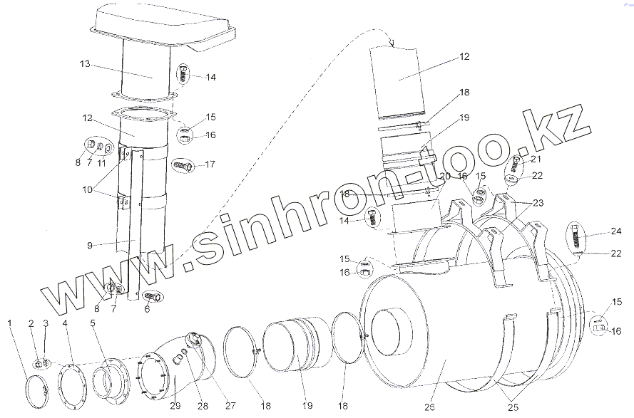 Каталог запасных частей к технике: МЗКТ-7402. Установка воздухоочистителя
