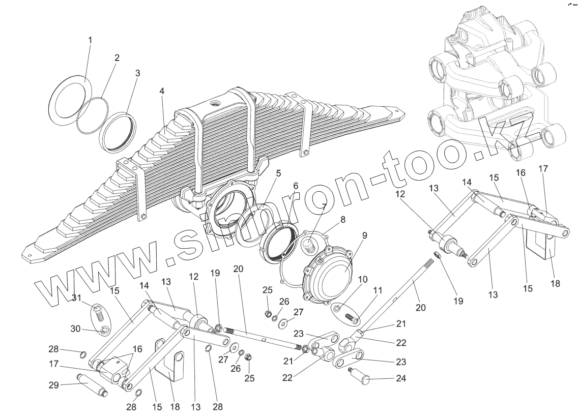 Каталог запасных частей к технике: МЗКТ-74131. Подвеска задняя