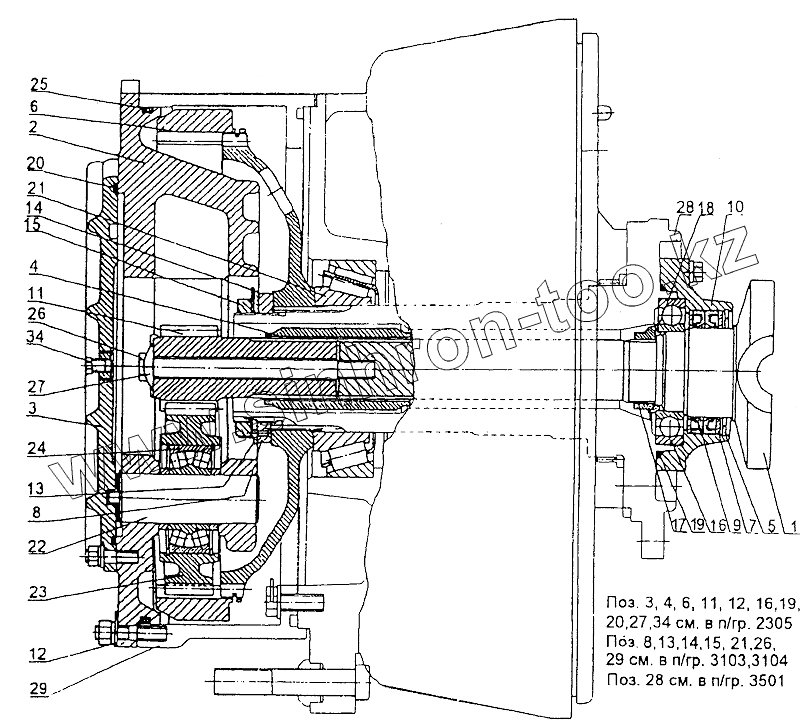 Каталог запасных частей к технике: МЗКТ-74131. Полуось и передача планетарная