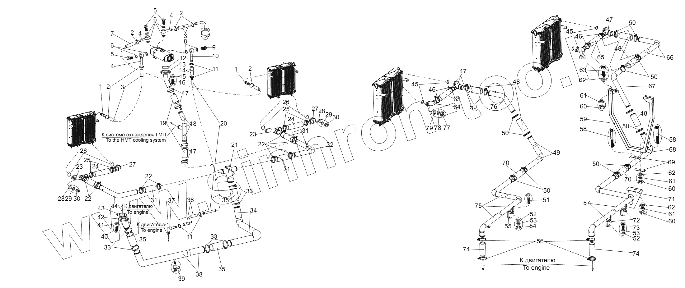 Каталог запасных частей к технике: МЗКТ-74131. Система охлаждения двигателя