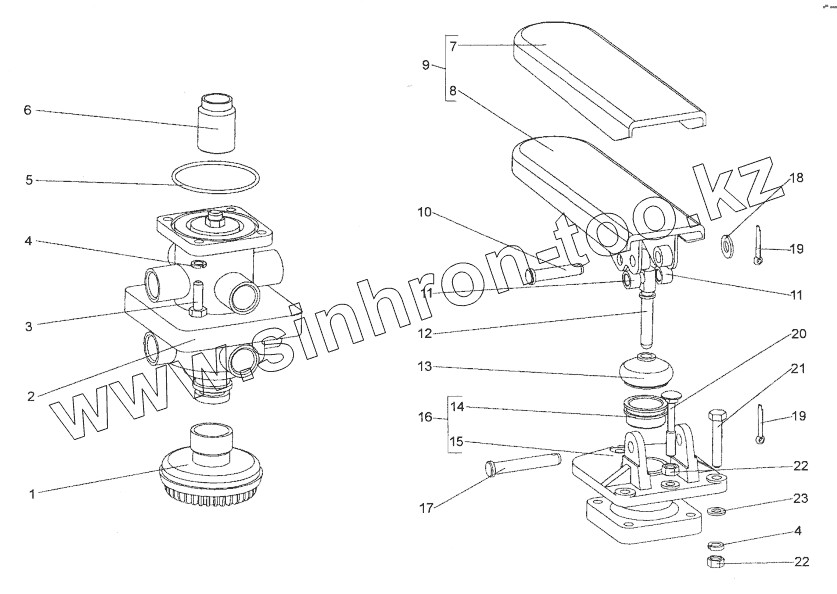 Каталог запасных частей к технике: МЗКТ-74171. Привод тормозного крана