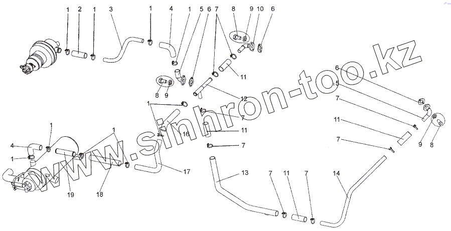 Каталог запасных частей к технике: МЗКТ-74171. Система охлаждения подогревателя (ПЖД)