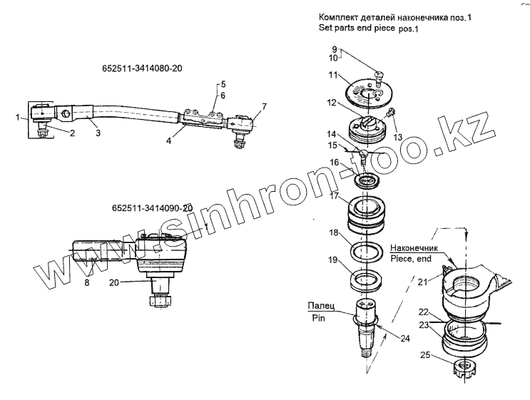 Каталог запасных частей к технике: МЗКТ-74171. Тяга 652511-3414080-20