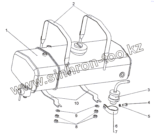 Каталог запасных частей к технике: МЗКТ-74171. Установка бачка расширительного и редукционного клапана